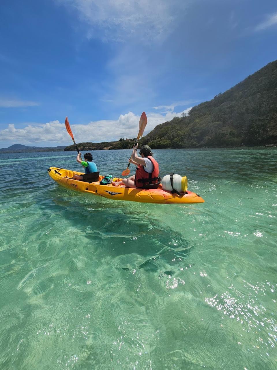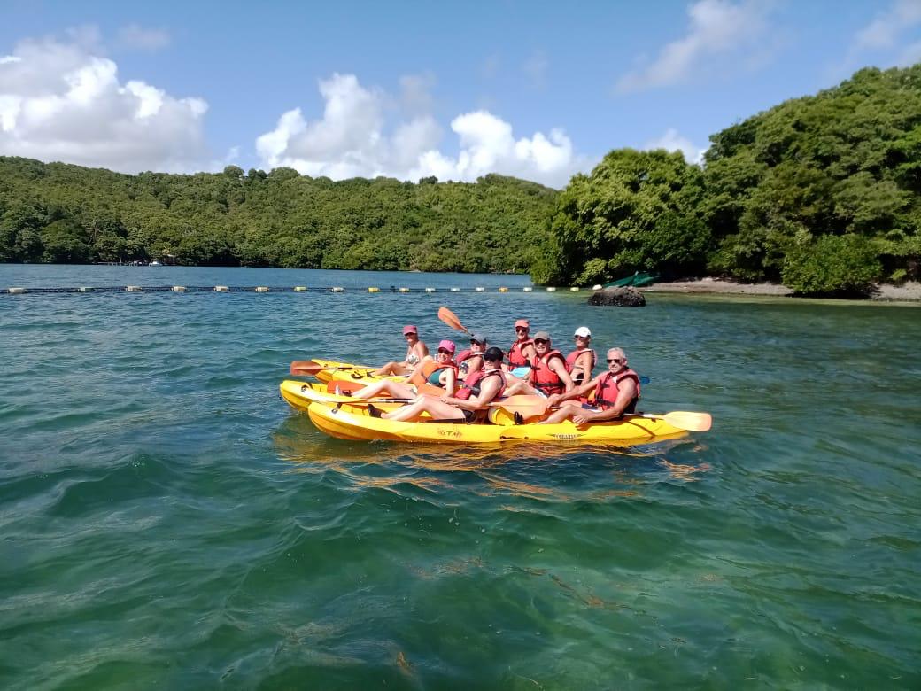 🚣♀️ Partez pour une demi-journée ou une journée d’évasion en kayak à la découverte des fonds blancs et de l’îlet Madame, une expérience unique au cœur des paysages marins de la Martinique 🇲🇶.