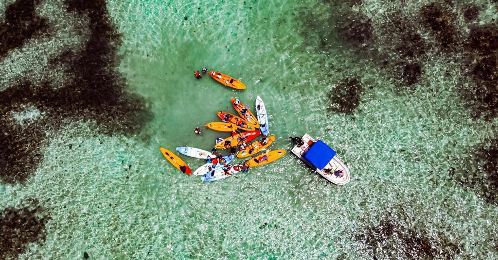 📍 Départ depuis Pointe La Rose, où vous embarquez sur votre kayak 🛶 pour une navigation tranquille à travers des eaux limpides et peu profondes 🌊.